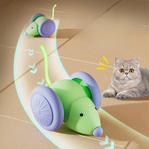 Electric cat toy shaped like a mouse car with automatic movement and obstacle avoidance. Designed to stimulate hunting instincts and keep cats active and entertained.